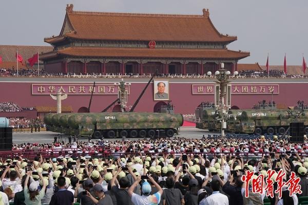 在地面装备方队中,由多款“国之重器”构成的战略打击群最后出场,充分反映了我国陆海空基“三位一体”战略核威慑与核反击力量的最新发展成果,公开展示的“惊雷-1”空基远程导弹、“巨浪-3”潜射洲际导弹、“东风-61”陆基洲际导弹、“东风-31”新型陆基洲际导弹,首次集中展示我军陆、海、空基“三位一体”战略核力量,是维护国家主权、捍卫民族尊严的战略“王牌”。