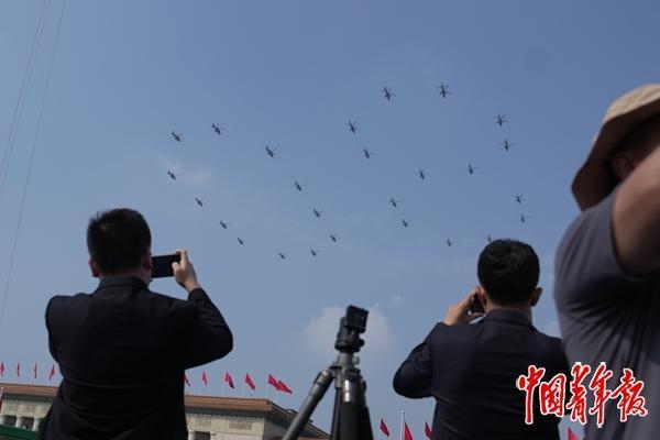 空中梯队,按照模块化、体系化编组,由先进的预警指挥机、歼击机、轰炸机、运输机等组成,基本涵盖了空军和海军航空兵现役主战机型,空警-600舰载预警指挥机、歼-35隐身舰载战斗机、歼-15T弹射型舰载战斗机、歼-20S双座版隐身战斗机和运-20B大型运输机等明星装备公开亮相,充分展示了我军新一代空中作战力量的跨越式发展和先进水平。