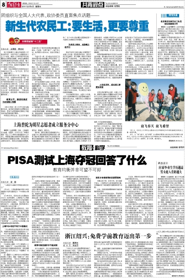 他同时提到维护新生代农民工合法权益的问题,建议健全有关农民工权益保护的法律法规、制定专门的农民工权益保护法律法规,“目前山西省、江苏省已制定了专门的农民工权益保护法规。”