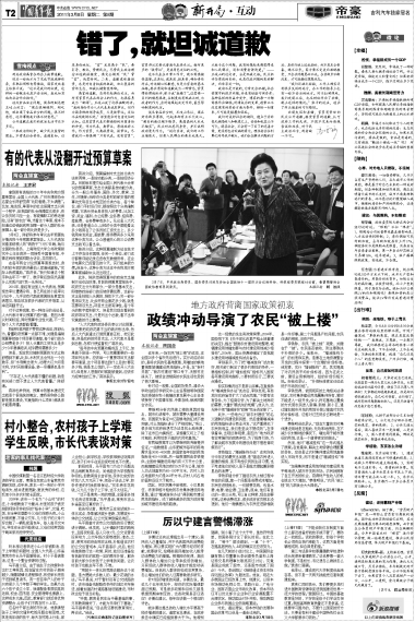 回应一些地方为了完成节能减排任务,采取拉闸限电等措施,国家发改委主任张平说:“这不是我们的初衷,这样的一些做法也是不妥当的,我也如实地向社会作出检讨。”