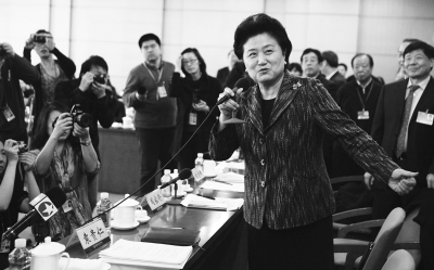 3月7日,中央政治局委员、国务委员刘延东参加全国政协十一届四次会议的科协、科技组委员联组讨论前,看望隔壁的全国政协教育界别委员。