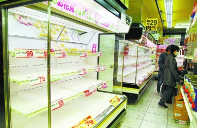 3月14日,人们在日本东京一家超市选购货物。这里的很多货架已经没有货物摆放了。受东京电力公司宣布在东京实行轮流停电措施等影响,14日东京轨道交通部分线路和区段运营暂停,一些超市的食品货架也因市民囤货、补给迟滞而暂时空架。新华社记者 冯武勇摄