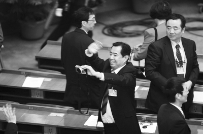 3月13日,全国政协十一届四次会议闭幕会在人民大会堂举行,会议结束后几位列席会议的代表在会场里拍照留念。本报记者 杨姣摄