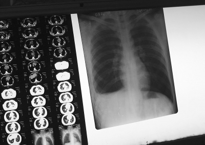 2009年3月24日,河北赵县,结核病人的X光片。