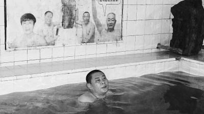 第一个进门的顾客,是个70多岁,花白头发的瘦老头,刚进池子就说:“唉,这就是小时候洗澡那滋味儿。”熊堂主的心总算踏实下来。