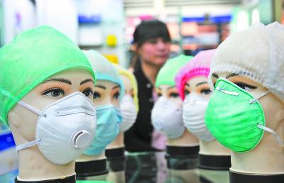 3月29日,浙江省温州市的一家口罩厂在义乌中国小商品市场展示各类口罩。
