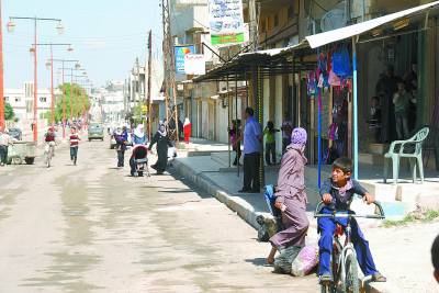10月13日,在叙利亚中部霍姆斯省拉斯坦市,当地居民经过恢复营业的商店。叙利亚政府军于10月1日攻占了拉斯坦市,并控制了该市局势。如今,这座拥有6万人口的城市已逐渐恢复正常的生活和社会秩序。巴西姆摄(新华社发)