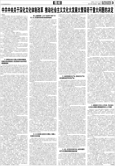 中共中央关于深化文化体制改革 推动社会主义文化大发展大繁荣若干重大问题的决定