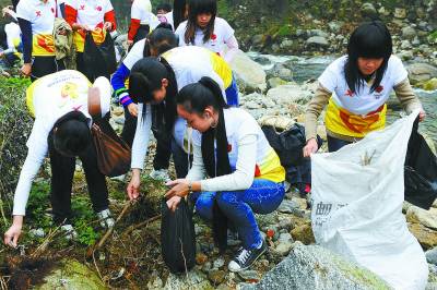 11月1日,西安翻译学院300多名学生在沣河边捡白色垃圾。当日,由西安市秦岭生态保护管理委员会、团西安市委、长安区政府共同主办的“西安市万名志愿者秦岭生态保护行动”在西安太乙宫启动,万名大学生志愿者向社会发出“保一山碧绿,护八水长流”的倡议,并以实际行动呼唤更多市民、游客加入到“关爱秦岭、保护生态”的行列中。