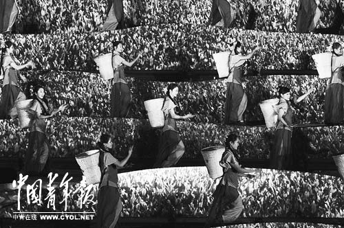 每天晚上7点多,吃过晚饭,家住在井冈山市新城区红军大道上的贺元宝,换上红军军装,骑上摩托车,赶往山脚下拿山乡大型实景演出《井冈山》演出地,参加当晚8点20开始的演出。一年中除了冬天和下暴雨,他天天都来。贺元宝是《井冈山》600多名群众演员中的普通一员。这些群众演员,都是井冈山市的农民和打工者。贺的太爷爷就是一名红军战士,随部队离开井冈山后再也没有回来。