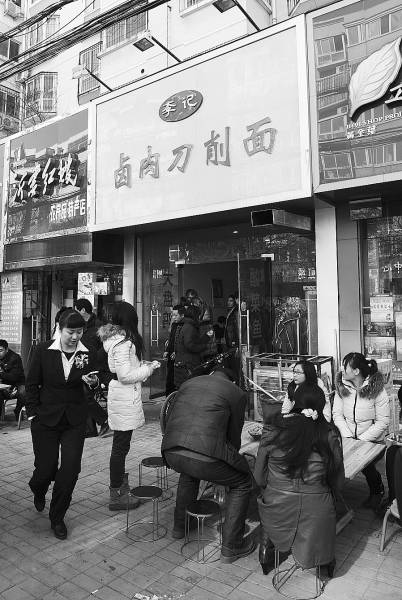 许多网友看到患癌面馆老板求助的帖子之后,相约来到面馆吃面(1月25日摄)。
