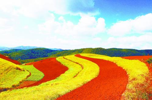 红土地旅游景区地处高原山区,因土为酸性,富含铁、镁等元素而呈红色。红色的土地点缀着多彩的作物,从而也造就了多姿多彩、变换万千的红土地景观,被誉为“大地刺绣的精品,农耕文化的杰作”和“地画”。在2012年举办的首届中国乡村(旅游)发展论坛上,红土地镇荣膺了“中国十佳最美风情小镇”称号。