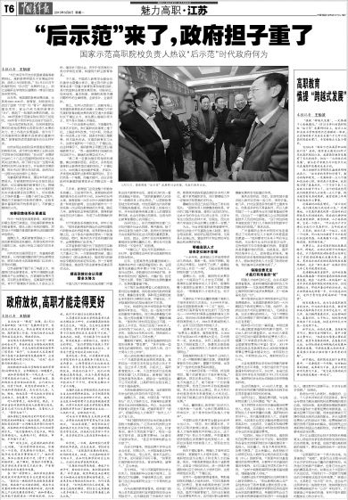 如何实现由初级阶段向更高发展层次的转型升级,成为参加在南京工业职业技术学院举办的高职院校“后示范”发展研讨会的二十几名示范高职院校院长书记共同关注的焦点。除了探讨在这一过程中高职院校如何从自身发力,开拓美好发展前景,院长书记们更为关注的是,政府在这一过程中应该扮演什么角色?