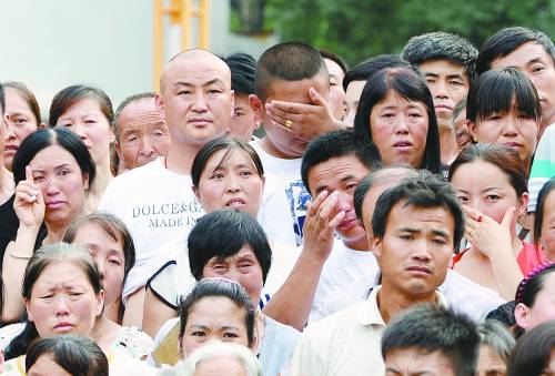 7月17日,陕西省延川县万余名干部群众聚集在文化艺术广场,沉痛悼念在“7·12”抢险救灾中英勇牺牲的李小林、贾军维、张晓宏。