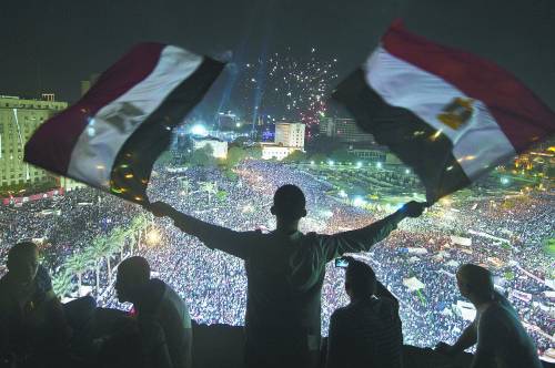 军方支持者们响应号召,26日在开罗解放广场大举游行集会。数百万民众当天也再次在埃及多座城市举行大规模游行。