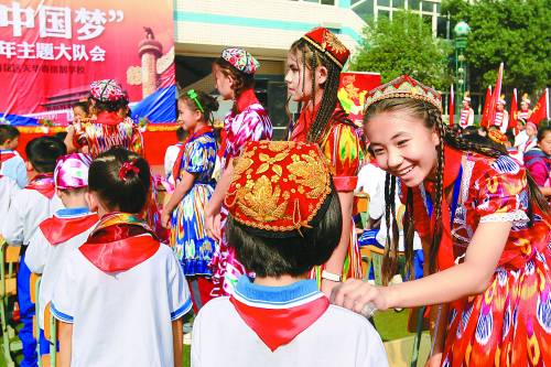湖南、新疆手拉手小伙伴互赠礼物。10月11日,“湘疆红领巾,相约中国梦”湖南省纪念中国少先队建队64周年主题队日活动在长沙市天华寄宿制学校举行,由团湖南省委、湖南省少工委邀请的吐鲁番地区100名少数民族少先队员代表与天华学校师生一起,手拉手庆祝节日。吐鲁番地委副书记姜欣、团湖南省委副书记汤立斌等出席活动。