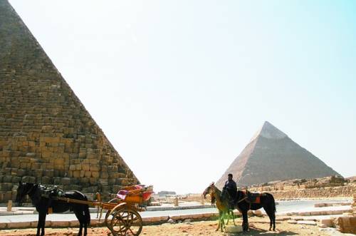 金字塔和狮身人面像是埃及的象征,也是游客们在埃及的必到之处。但在今年10月,扼守在利比亚沙漠的胡夫金字塔、卡夫拉金字塔和孟卡拉金字塔显得格外落寞。无人骑乘的骆驼和马匹悠闲地吃着饲料,百无聊赖的小贩在阴凉处三三两两地闲聊。“七块,七块人民币。”在这个小贩多过游客的旅游胜地,有人操着生硬的中文锲而不舍地向我推销纪念品。