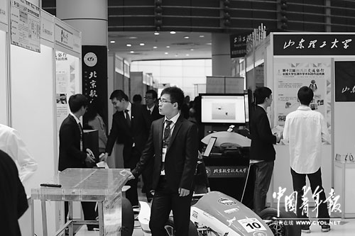 屏幕前舞动跳跃的皮影小人的指挥者竟然是机器人——西安电子科技大学学生的“自主学习的皮影表演设备”,为皮影表演机器人设计整套自主学习算法,使得机器人可以自主从民间艺人的表演中提取并处理动作信息,舞动机械臂将表演还原;山东理工大学学生带来了可以立体移动、进行三维操作的“新型宏动式3D鼠标”;澳门大学的展览作品“视障人士巴士系统”把报站数据和能够产生盲人文字的仪器结合起来,让盲人只要通过触摸,就能了解到下一辆到达的是几路公交车等信息……第十三届“挑战杯”交通银行全国大学生课外学术科技作品竞赛决赛现场,大学生们的创意上天入地,既有“高端大气上档次”的无人直升机、智能机器人,又有贴近生活、创意新颖的“小玩意儿”,创新气息扑面而来。