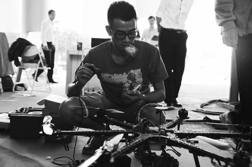 施佺老师的兴趣小组每年都会吸收十几名同学,在做科研的过程中,逐渐筛选出4~5名学生作为主力。小组成员和指导老师都来自电子信息工程和计算机两个学科,学生们分工合作,从购买材料,到电路板的设计、画图、焊接、组装,内部程序的编写,全部是自主完成的。
