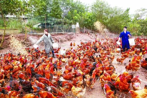 11月10日,四川省内江市,85后大学生夏韬滔和女友王俊正在用粮食喂鸡。今年26岁的夏韬滔是四川省内江市东兴区杨家镇柏梨村人。2009年10月,即将大学毕业的夏韬滔开始寻思着以后的出路。联想到家乡丰富的山林资源,他决定发展土鸡养殖。2010年春节,夏韬滔尝试养殖的100多只土鸡全部出栏,初次的成功让他坚定了回乡创业养土鸡的信念。2012年10月,为支持他的事业,女友王俊也放弃了在绵阳月薪近万元的工作,来到内江和他一起创业。2013年8月,经过多方考察论证,夏韬滔和女友在城区开设了全市第一家土鸡专卖店,在全城范围内免费配送,直接卖进了居民小区。