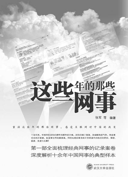 一本深度解析中国十余年经典网事的作品《这些年的那些网事》近日由武汉大学出版社出版。该书主编张军是湖北经济学院新闻与传播学院院长,他在序言中写道:“无边界、无规则、无制度的群体,可以借助网络沟通的快捷与广阔,发酵膨胀沟通的效率传播,从而使网络成为社会事件的‘放大器’和‘扬声筒’。”他道出了近年来中国网事的现状。