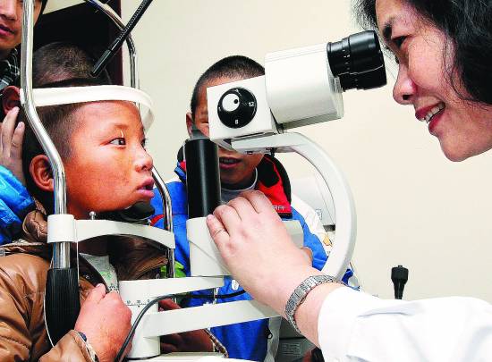 1月4日,医生在为9岁的普布加措检查人工晶体位置。