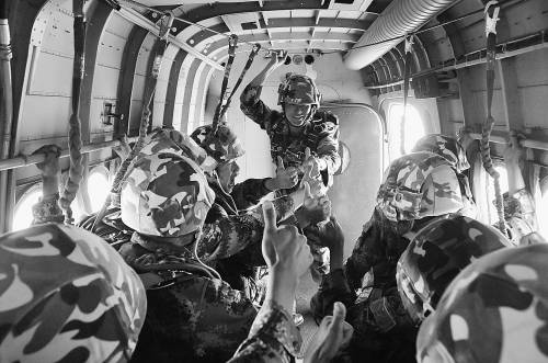 “战歌如雷,马达怒吼,英勇的空降兵飞向敌后……”2月21日清晨,大别山麓某军用机场,震天的战歌驱散了刺骨的寒意。空降兵某军数千名新兵登上飞机,进行首次跳伞训练。