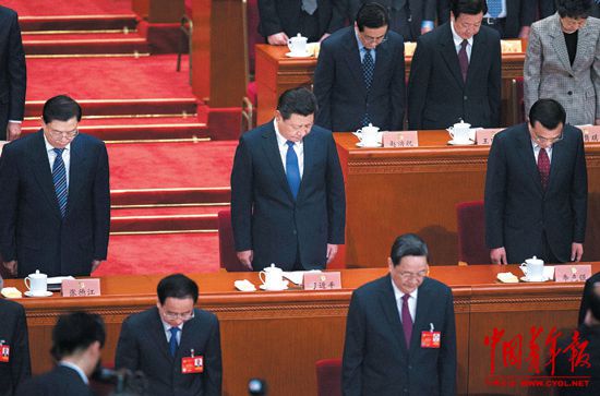 3月3日,中国人民政治协商会议第十二届全国委员会第二次会议在北京人民大会堂开幕。会上,党和国家领导人习近平、李克强、张德江、俞正声等和全体与会人员为在3月1日晚云南昆明火车站发生的严重暴力恐怖事件中遇难的群众默哀。