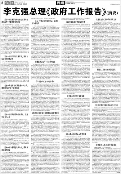 国务院总理李克强5日在十二届全国人大二次会议上作政府工作报告时说,过去一年,面对世界经济复苏艰难、国内经济下行压力加大、自然灾害频发、多重矛盾交织的复杂形势,全国各族人民在以习近平同志为总书记的党中央领导下,从容应对挑战,奋力攻坚克难,圆满实现全年经济社会发展主要预期目标,改革开放和社会主义现代化建设取得令人瞩目的重大成就。