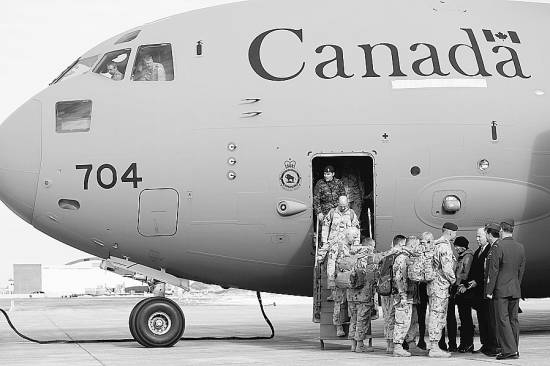 3月18日,渥太华机场,加拿大驻阿富汗最后一批军人走下“C-17环球霸王”运输机,其在阿富汗的军事行动3月12日正式结束。加拿大2001年参与以美国为首的北约出兵阿富汗,13年来先后派出4万多军人,是其历史上最大规模的海外派兵行动,共有158人阵亡,2000人受伤。