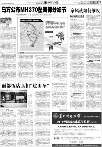 马方公布MH370坠海部分细节