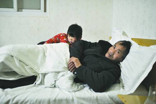 夜幕降临,站前路依然一片热闹。在新鸿安商城地下室一家宾馆里,孙超裹着被子,倚靠在墙边和儿子逗乐。春节后的10多天,孙超几乎每天晚上都住在这个房间里。妻子带着孩子到合肥来看他,这让冷清的房间增加了一丝暖意,孙超也很开心。35岁的孙超是淮南人,长期跑合肥至淮南的客运,因为春运忙碌,他每天两趟四个来回,根本没有时间回家,这段时间不得不住在宾馆里。由于都是自费,于是孙超选择了站前路这家旅馆,“一晚45元,算是对老客户的照顾。”对打工者来说 ,钱是最重要的,要不是为了钱谁会四处奔波,有便宜的地方住就行了,能省则省。