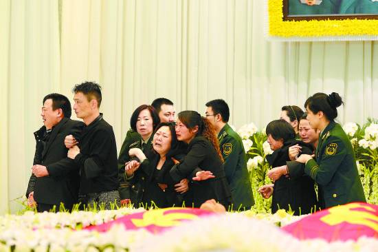 5月5日,上海龙华殡仪馆,家属向钱凌云、刘杰告别。