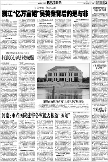 沈阳市高花街道张福安村村民赵国富建了一处“土豪大院”,面积达数百亩,有楼房、仿古凉亭、石雕围栏、拱桥、水塘等设施。仿古凉亭黛瓦蓝檐,彩绘崭新而抢眼,红柱上还嵌刻黄色龙纹。