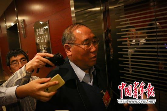 人们没有忘记他的本行。上午集体听取李克强总理政府工作报告后,返回驻地的大巴上,就有人指着报告里提到的“黄标车”,询问这位环保行家。