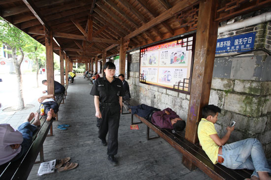 4月16日,重新穿上制服走向塔山广场,曹羽像以往一样观察着四周的情况,市民三三两两地在长廊的木椅子上聊天。对于女儿的正义之举,在制药厂当工人的爸爸曹跃辉半天吐出了两个字:“自豪”,妈妈罗京平补充了一句:“除暴安良,是正义的。”
