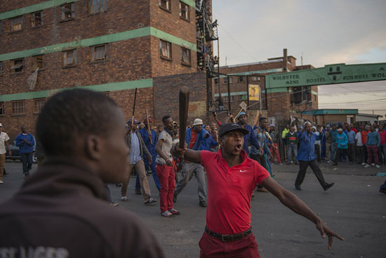 4月17日,南非约翰内斯堡,一名当地男子手持棍棒呼喊口号。南非国际关系与合作部长马沙巴内17日在行政首都比勒陀利亚紧急召见非洲国家驻南非使节,通报南非政府为遏制南非多个地区的排外暴力事件所采取的措施,并表示南非政府将采取一切必要手段确保外国人安全。连日来,南非德班市和约翰内斯堡市相继发生排外暴力事件。据警方17日提供的最新数据,排外暴力事件已造成6人死亡,数十人受伤,数百家外国人开的商店被打砸哄抢,数千名外国人流离失所。新华社/法新