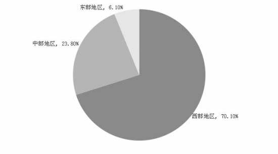 从区域来看,西部地区资金为121.72亿元,占全国资金总额的70.10%;中部地区为41.32亿元,占23.80%;东部地区10.6亿元,占6.10%。