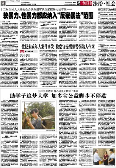 陈蔚文委员还提出,暴力行为有硬暴力和软暴力,现在规定为家庭暴力的多是硬暴力。“但是除了这些,还有很多其他形式的软暴力,用软暴力折磨一个人是很容易的,比如让老人挨饿受冻、恐吓等等,建议法条中尽可能拓宽界定范围。”
