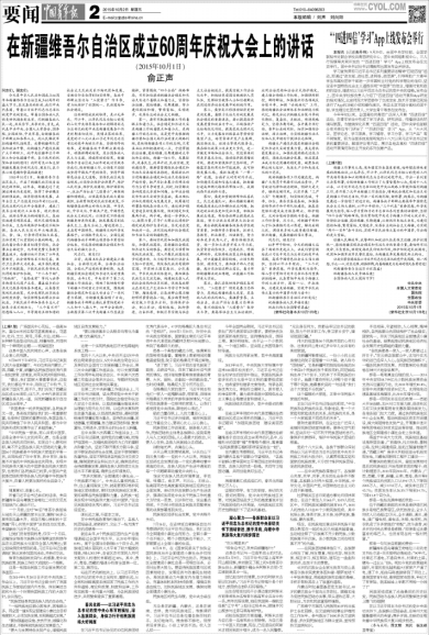 在新疆维吾尔自治区成立60周年庆祝大会上的讲话
