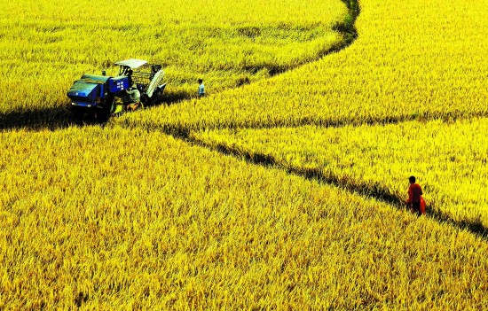 10月24日,江西省靖安县双溪镇河北村农民驾驶农机在抢收晚稻。当日是“霜降”节气,江西农村进入秋收、冬种最繁忙季节。