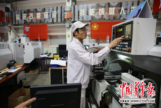 数控车工比赛结束后,工作人员操作测量机,检测选手们制作的产品。 |