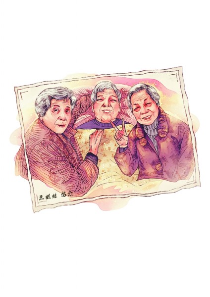 在最终出版的《梅子青时》中,张哲把“世纪大重逢”的照片做了手绘处理,画上的3人,头发斑白,眯起眼笑得开心,外婆不缺牙,陶爱凤也嘴角上翘,露出一口整齐的牙齿。