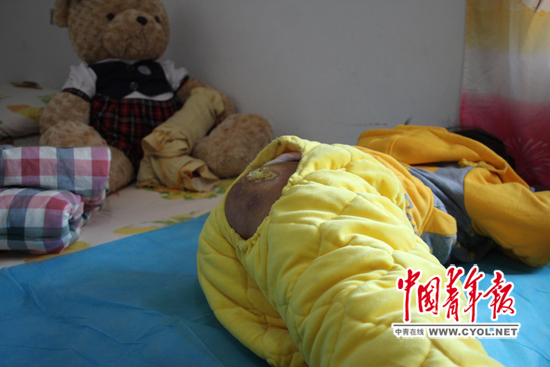 “我是一个赤脚医生,我也是鼓起勇气揽下这事,当时压力非常大。”孙素荣告诉中国青年报记者,每隔两个小时她就给孩子手上和屁股上换药,晚上也是如此。60岁的孙素荣干脆陪孩子睡觉,除了方便换药,她还要看着孩子,不让孩子的手碰到伤口。