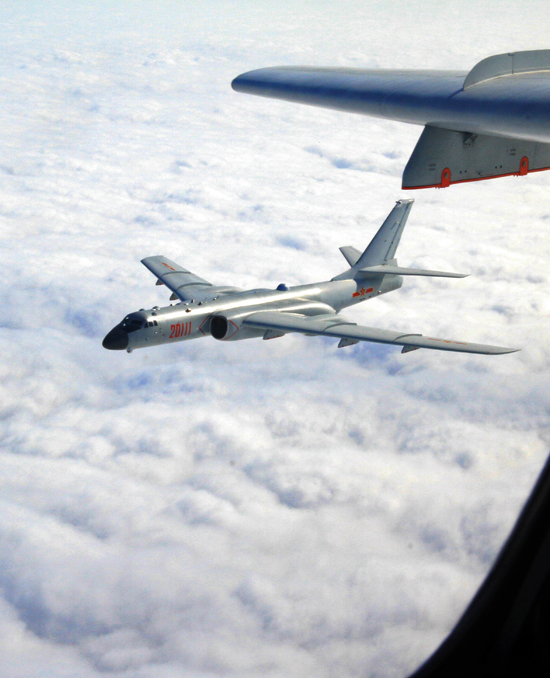 11月27日,南京,空军新闻发言人申进科介绍,空军于当天组织轰-6K等多型飞机飞越宫古海峡赴西太平洋远海训练,飞出第一岛链1000余公里;同时出动轰-6K和多型歼击机、多型预警机在东海防空识别区远海警巡。图为空军轰-6K飞机进行远海训练。