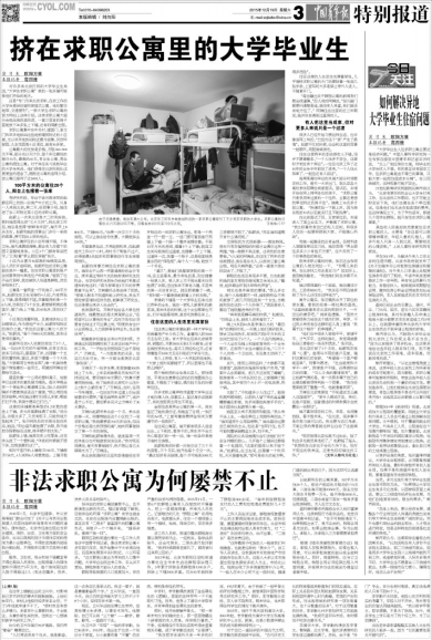 朝阳区劲松街道办事处一名工作人员告诉中国青年报记者,像这类求职公寓十多年前已存在,刚开始集中于大学周边地区,后逐渐发展到中关村附近,二三环居多。“这主要是以就业为导向的人口集中问题。大学毕业生刚出来工作,手头并不宽裕,群租房是大部分人的首选。”