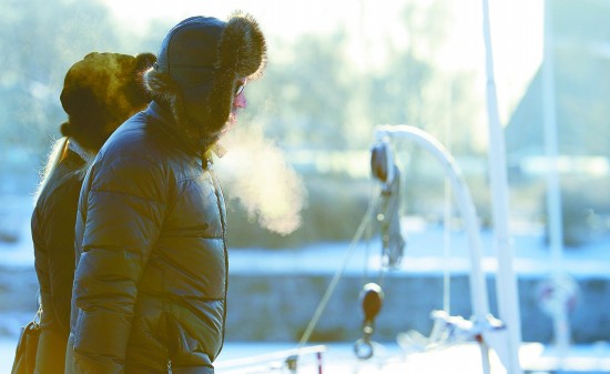 1月7日,在瑞典斯德哥尔摩,一对夫妇走在码头上。