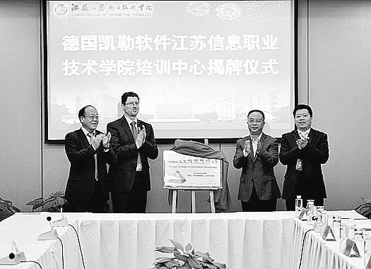 3月21日,德国凯勒数控软件培训中心在江苏信息职业技术学院正式揭牌。该培训中心的成立,意味着学生将不出国门,就能享受到德国职业教育优质教学资源的“理——虚——实”一体化教学,在学校就能取得业内认可的德国证书。学生的就业竞争力将大大提升。