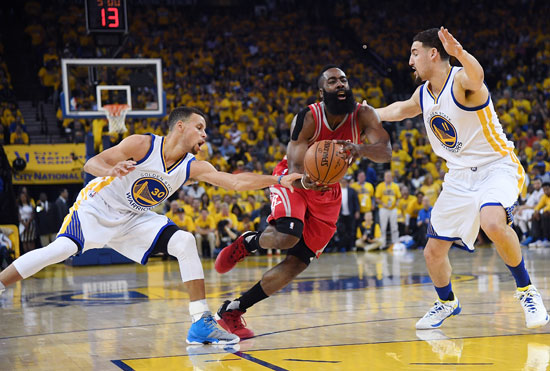 4月17日,NBA季后赛首轮较量,勇士队以104∶78击败火箭队。视觉中国供图