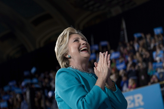 11月6日,在美国俄亥俄州克利夫兰,民主党总统候选人希拉里出席竞选集会。美国联邦调查局局长詹姆斯·科米6日说,联邦调查局就希拉里“邮件门”事件维持此前作出的不建议起诉希拉里的结论。新华社/法新